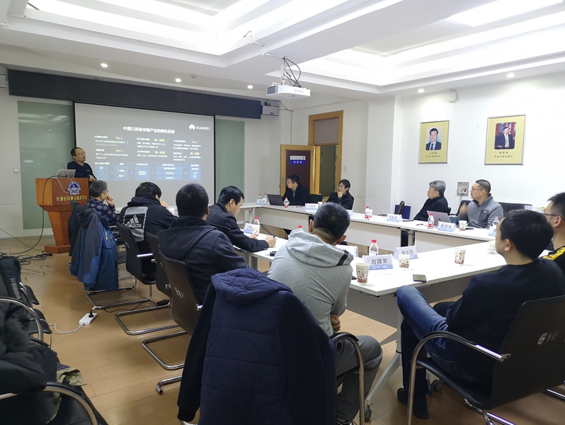 王忠杰代表计算学部对华为技术团队表示了热烈欢迎,表达了双方在科研合作、人才培养等方面的合作意愿。于璠做了题为“MindSpore全场景AI计算框架”的报告,介绍了MindSpore的关键技术特性,阐述了MindSpore多维度生态合作计划。海丽娟介绍了用于MindSpore的华为AI编程语言的最新研发进展,并结合实例展示了新语言的技术优势。参会人员进行了深入交谈,初步达成多个合作意向。