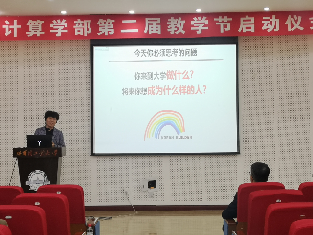 为凝练我校百年教育教学的传统、特色与风格,营造尊师重教的氛围,以习近平总书记贺信精神为引领,坚持立德树人根本任务,坚守为党育人为国育才,全面提高人才培养能力和培养质量,为中国共产党百年华诞献礼,5月17日,计算学部第二届教学节启动仪式暨课程思政与教学方法报告会在活动中心214成功举行。哈尔滨工业大学教务处副处长黄文涛,省教学名师、省高等学校课程思政建设教学名师、化工与化学学院范瑞清教授应邀出席,计算学部主任刘挺、党委书记孙文博、副主任张宏莉、副主任王忠杰、党委副书记单既阳、主任助理袁永峰、省教学名师苏小红以及计算学部师生代表近80人参加活动,启动仪式由计算学部副主任邬向前主持。