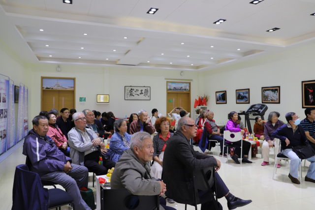 老同志们一起开展了中秋佳节诗词会活动。在节日的氛围映照下,老同志们其乐融融,兴致勃勃,共同合作,将古诗词朗诵的淋漓尽致,充分展现了老有所乐、积极参与、健康向上的积极风貌,现场洋溢着祥和喜庆的节日气氛。
