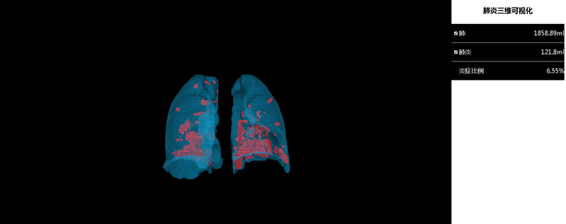 经过多轮论证和科学对比分析,该系统能够较好地实现多期新冠肺炎患者肺部器官和病灶的快速识别,并实现三维可视化,时间效率较目前主流软件大大提高,有效提升了医生诊断的工作效率,同时可以计算出肺炎体积并进行定量分析,作为诊断的重要参考依据。