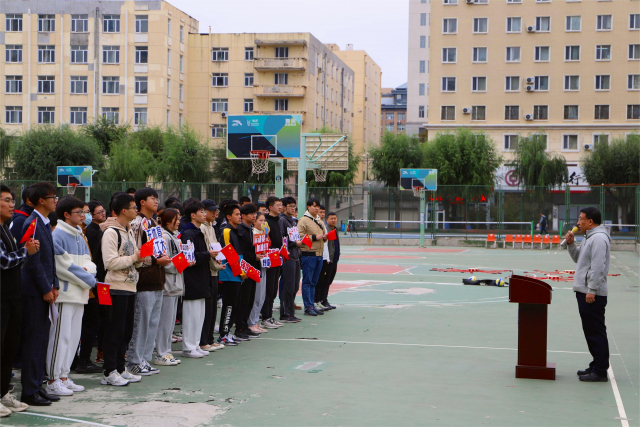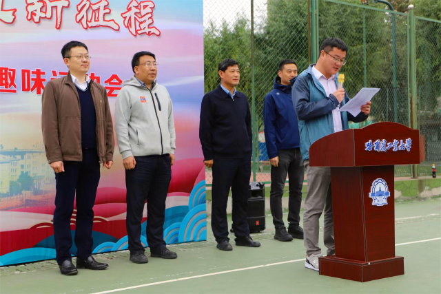 刘挺主任为本次运动会致辞,刘挺主任表示,本次运动会为同学们提供了参与集体项目的机会,有利于培养我们的集体主义精神和团结协作的意识。虽然今天气温骤降,非常寒冷,但同学们依然早起来到篮球场,充分体现了我们哈工大人不畏艰苦、勇于奋斗的精神。此外,本次运动会营造了健康向上的校园体育文化氛围,我们距离努力实现“每天锻炼一小时,健康工作五十年,幸福生活一辈子”的目标越来越近。随后,2021级本科生运动员代表苏晗发言,代表全体运动员宣誓,谢善利副书记宣布趣味运动会正式开始。