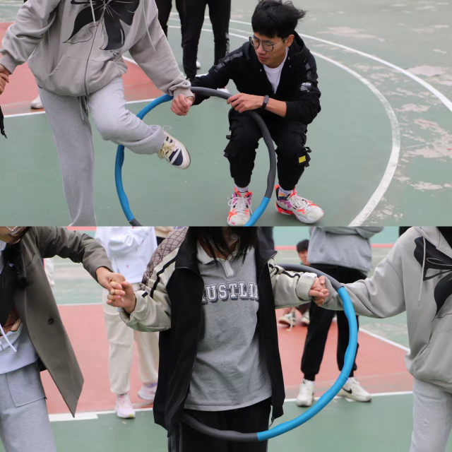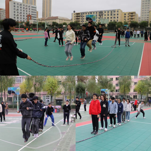 随后还有跳长绳、千帆竞渡、带球跑四人接力赛、趣味呼啦圈、立定跳远、踢毽子等多项比赛如火如荼的举行。