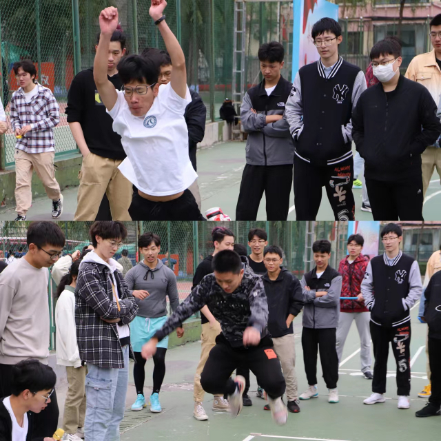 接下来是击鼓同心趣味比赛,比赛由8人组成一支队伍,比拼不间断铜鼓击球的次数,该项目充分考验同学们的团队沟通和协作能力,需要各成员间默契把握球的落点以及击球力度,最终“夏衣队”、“啊对对对对对对队”、“计算学部研究生会队”分别以14次、10次、9次的击球次数获得前三名。