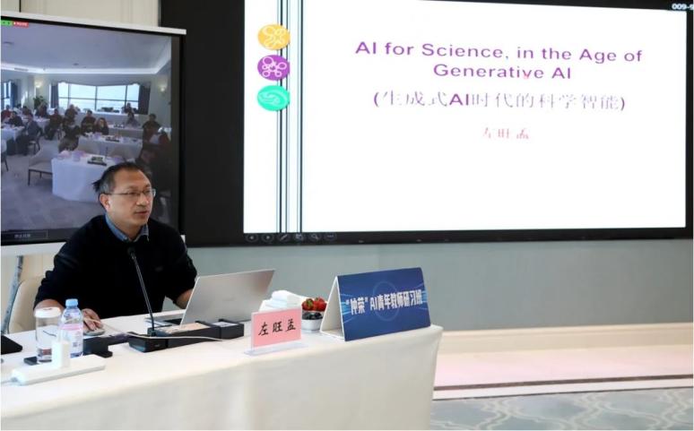 计算学部左旺孟教授以“生成式AI时代的科学智能”为题,为学员介绍了AI for science,生成式AI(自监督、LMM与扩散模型),预训练模型在不同学科领域的应用,面向具体学科领域的基础模型等内容。