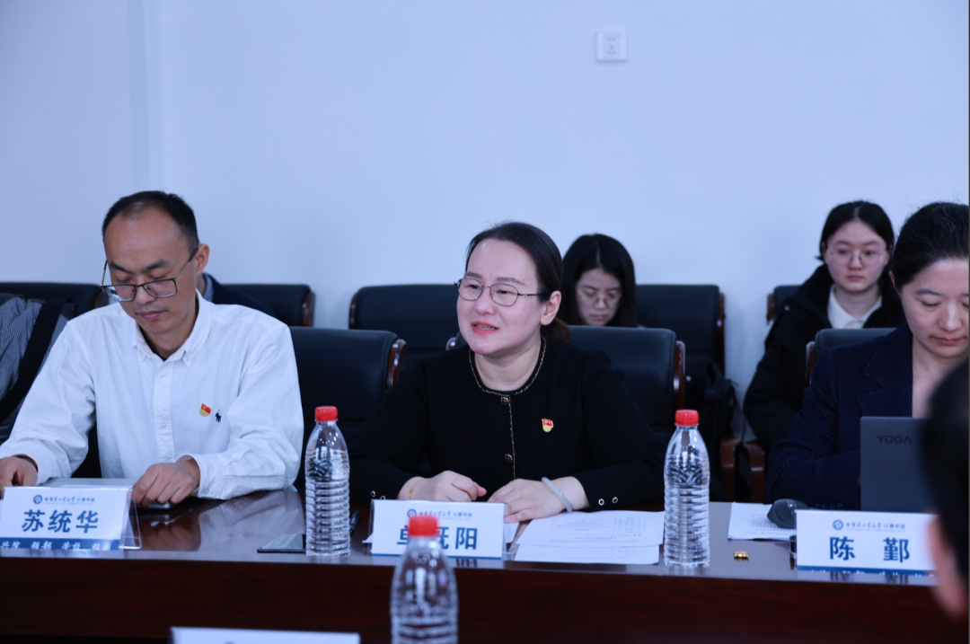 单既阳对国网山东省电力公司经济技术研究院能源互联网中心一行的来访表示热烈欢迎。她介绍了哈工大计算学部的历史沿革和基本情况,着重介绍了学部在师资力量、科研项目和人才培养方面的标志性成果和党建共建开展的情况。她表示,在以中国式现代化全面推进强国建设、民族复兴伟业、实现新型工业化的伟大进程中,加快构建新型电力系统是推进新型工业化的重要组成部分,希望双方“强强联手”,通过理论联学、活动联办、人才联培、项目联动,带动双方不断深化党建、科研、人才、教学等方面合作,进一步拓展合作的空间,促进共同发展。