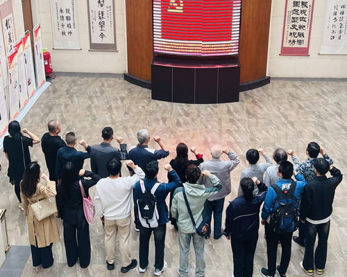 活动最后,全体党员面向党旗重温入党誓词,铿锵有力的誓言响彻展厅,更加坚定了每一位党员为党和人民事业奋斗终身的决心。此次主题党日不仅让新老党员接受了一次深刻的党史学习教育,也架起了代际沟通的桥梁。未来,计算学部党委将继续深入开展各类活动,以红色精神引领师生在中国式现代化建设的道路上奋勇前行。